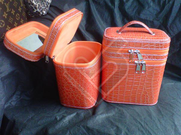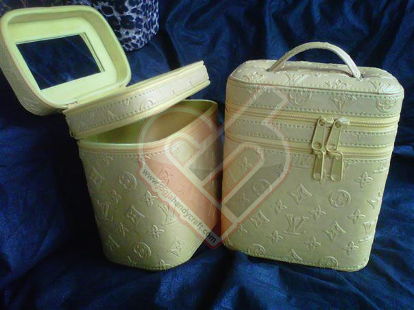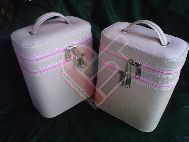 NYB 01 merupakan Make Up Case cantik yang praktis dibawa kemana saja dengan dimensi 17x11x21 (cm). NYB 01 mempunyai dua kompartemen, kompartemen bawah dan kompartemen atas dengan penutup resleting yang di matchingkan warnanya dengan cover luarnya. Tersedia banyak pilihan warna dan motif. Harga motif lebih mahal 10K dibandingkan harga polos karena mengingat bahan motif lebih mahal dibandingkan harga polos.